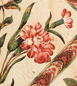 Dianthus caryophyllus (Carnation) courtesy, Winterthur Museum, DETAIL-Printed textile, 1850-1855, England, Cotton, Bequest of Henry Francis du Pont, 1969.3592
