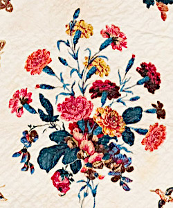 Dianthus caryophyllus (Carnation) from Charleston Museum, Chintz Applique Quilt, mid-19th century. Photo courtesy of the Charleston Museum.