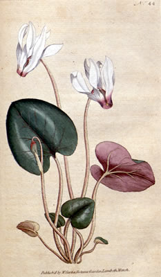 Cyclamen persicum (Cyclamen) from Curtis's Botanical Magazine, vol. 2: t. 44 (1788).