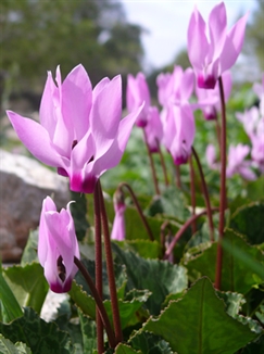 Cyclamen persicum (Cyclamen) growing in modern garden. By MathKnight and Zachi Evenor (Own work) [CC BY 3.0 (http://creativecommons.org/licenses/by/3.0), CC BY-SA 3.0 (http://creativecommons.org/licenses/by-sa/3.0) or GFDL (http://www.gnu.org/copyleft/fdl.html)], via Wikimedia Commons.