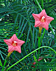 Common Names: Cyprus vine, winged leav'd ipomoea, cypressvine morning glory, cardinal creeper, cardinal vine, star glory or hummingbird vine