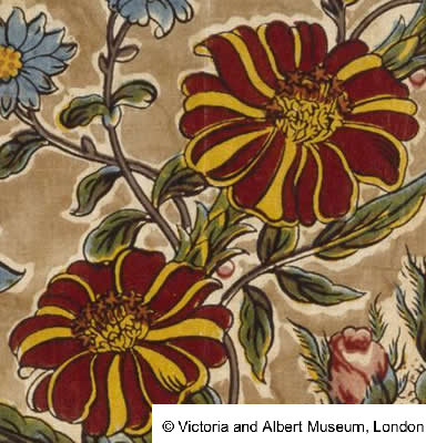 Tagetes patula (French Marigold) on Victoria and Albert Museum Furnishing Fabric Fragment, Object Number Circ.352-1955
