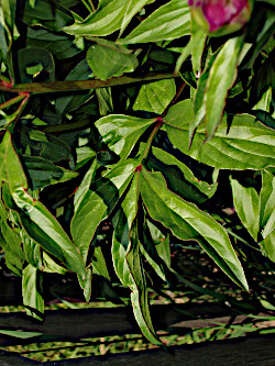 Paeonia lactiflora (Garden Peony) leaves from a plant in a modern garden