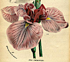 Iris ensata (Japanese Water Iris) (published as Iris kaempferi) from Louis van Houtte, Flore des serres et des jardin de l’Europe, vol. 20, unnumbered illustration preceeding p. 45, 1874