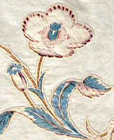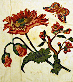 Three Papaver somniferum (Opium Poppy) motifs from the Henry Francis du Pont Winterthur Museum, Quilt center, England, 1810-30, Cotton, 1969.3247, Bequest of Henry Francis du Pont, Courtesy of Winterthur Museum (note the variation in flower form due to extensive of plant breeding)