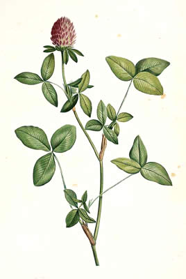 Trifolium pratense (Red Clover) from Rousseau, J.J., La botanique de J.J. Rousseau, t. 20 (1805) [P.J. Redoute].