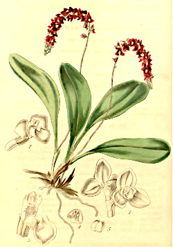 Stelis atropurpurea (Dark-Flowered Stelis) from Curtis's Botanical Magazine, vol. 69, plate 3975, 1843