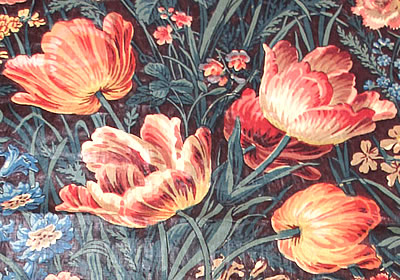 Tulipa sp. (Tulip) courtesy, Winterthur Museum, DETAIL-Printed textile, 1850-1855, England, Cotton, Bequest of Henry Francis du Pont, 1969.3592 C