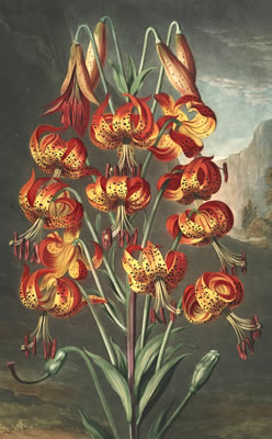 Lilium superbum (Turk's Cap Lily) from the Victoria and Albert Museum, Furnishing Fabric Fragment, CIRC.229-1956, printed in 1805