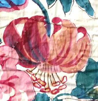 Lilium superbum (Turk's Cap Lily) motif from Museum Quality Early Chintz Broderie Perse Applique Quilt with Birds, Sold by Ebay Seller French72 in July, 2017, c. 1830