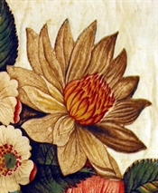 Nymphaea alba (White Water Lily) or Nymphaea odorata (American White Water Lily) on the 1843 Maria M. and Emma Fish Quilt , International Quilt Study Center & Museum, IQSC 2005.053.0003, 1843. Photo by Richard Bray with kind permission from the International Quilt Study Center & Museum