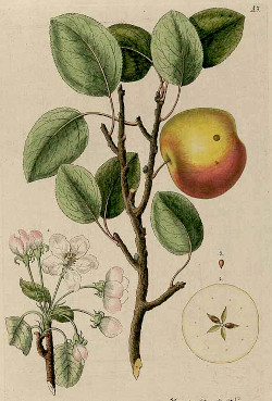 Malus pumila (Apple fruit) from Georg Wolfgang Knorr, Thesaurus rei herbariae hortensisque universalis, vol.1, pl. 4 (A3), 1750-1772