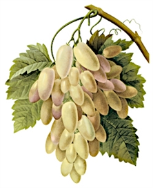 Vitis vinifera (Grapes) from the Henry Francis du Pont Winterthur Museum, Furniture Fabric Fragments, c.1830. Courtesy, Winterthur Museum, DETAIL-Printed textile, c.1830, England, Cotton, Bequest of Henry Francis du Pont, 1969.3128.001